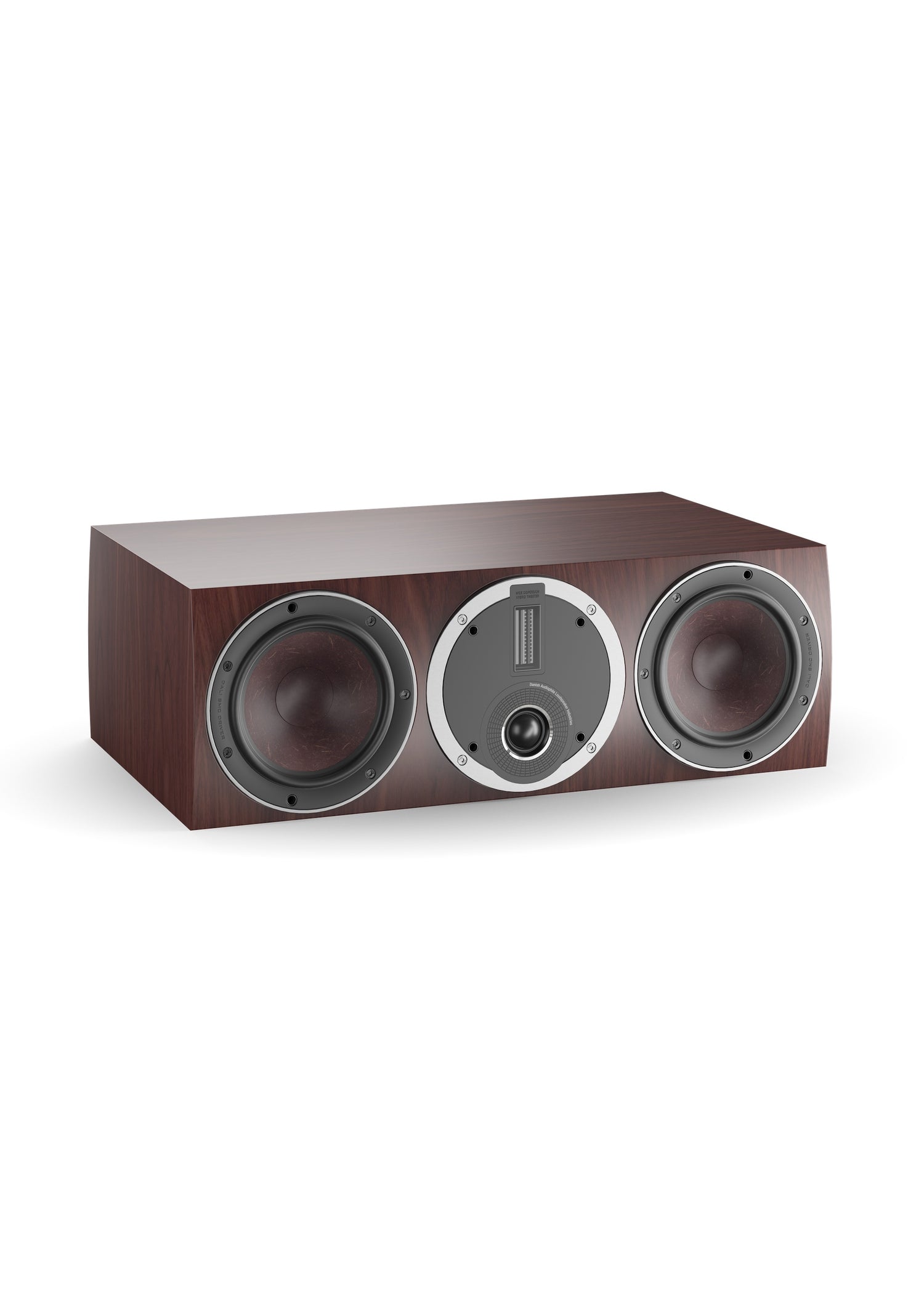 Der querformatige, 58 Zentimeter breite RUBICON VOKAL wartet mit der gleichen Chassisbestückung wie die Standbox RUBICON 6 auf: Die Wiedergabe des von 49 bis 34.000 Hertz reichenden Frequenzspektrums teilen sich zwei 165 mm große Tiefmitteltöner, eine 29 mm große Gewebekalotte und – erst oberhalb von 14 kHz einsetzend – der DALI- Bändchenhochtöner. Auf diese Weise ist nicht nur eine detailreiche, dynamische und jederzeit präzise ortbare Wiedergabe, sondern auch eine stimmige Einbindung des VOKAL in alle Lautsprecherkombinationen aus der RUBICON-Serie gewährleistet.