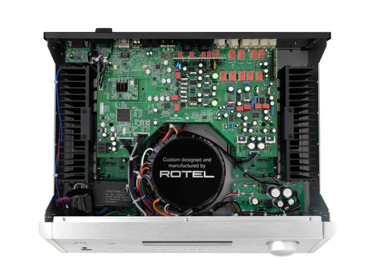 Als typischer Rotel-Verstärker hat der RA-1572MKII einen überdimensionierten Ringkerntransformator aus eigener Herstellung. Der Aufbau dieses Ringkerntransformators verhindert Streustrahlungen, die das Audiosignal in den benachbarten Stufen stören könnten. Der Transformator speist ein Netzwerk aus 4 hocheffizienten Slit-Foil-Siebkondensatoren mit niedrigem ESR in einem T-Netzwerk für eine tiefe, präzise Basswiedergabe.